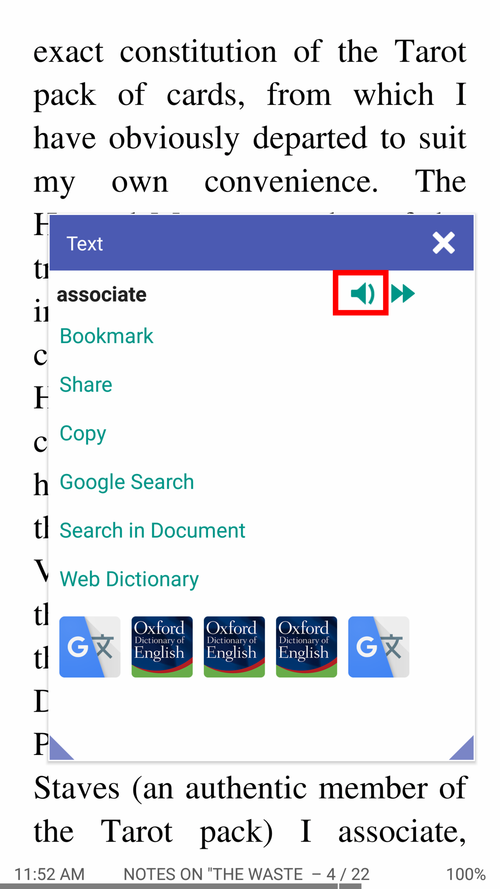 Обратите внимание! Вы можете настроить Librera для выбора слов одним нажатием на вкладке Advanced Settings (не рекомендуется)