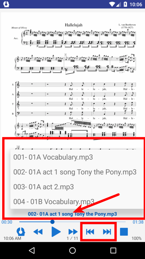Hören Sie sich eine MP3-Datei oder eine Dateiauswahl über den internen Player parallel zum Lesen des Buches an. Könnte nützlich sein für Musiker und für diejenigen, die Fremdsprachen lernen.