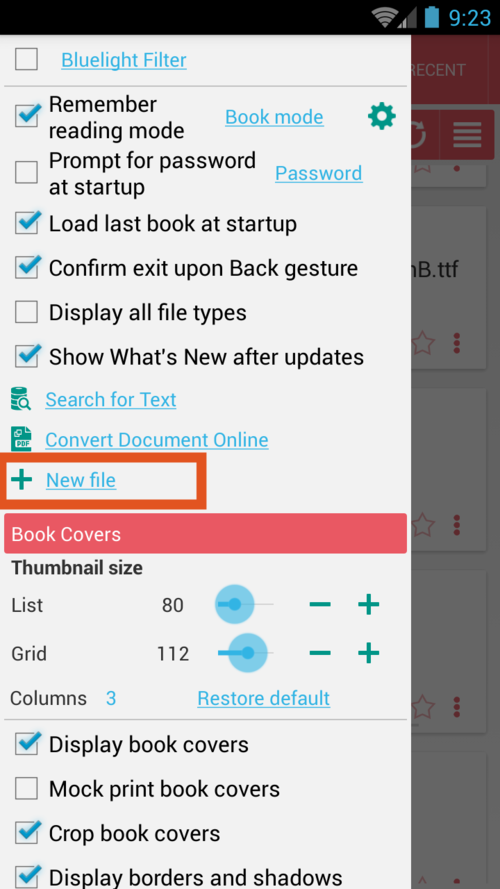 يمكنك استخدام وظيفة المفكرة Librera لإنشاء ملفاتك الخاصة بتنسيق .txt. سيكون مفيدًا عندما تقرر إنشاء مجموعة من عروض الأسعار من الكتب التي تقرأها (عن طريق نسخ/لصق) ، وتدوين ملاحظاتك على كتاب ، وتجميع ملف لتسجيل الصوت (TTS) ، إلخ.