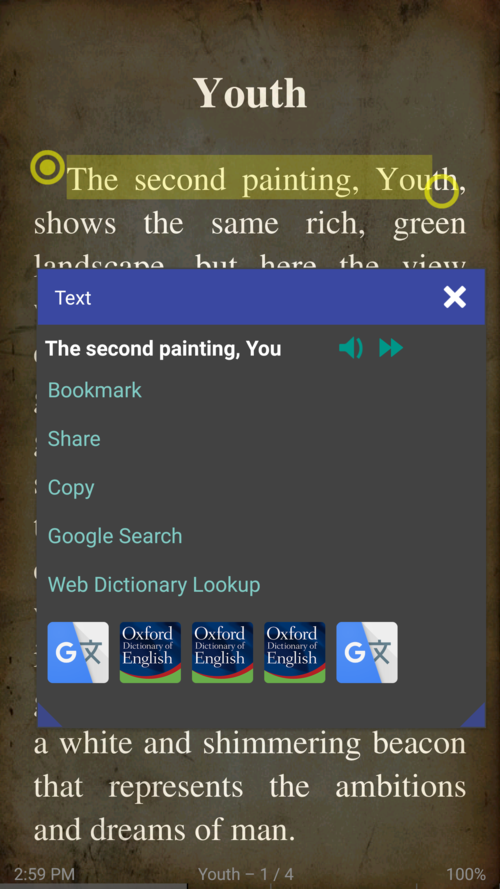 - Se l'utente seleziona più di una parola, verranno visualizzati i quadratini di selezione del testo