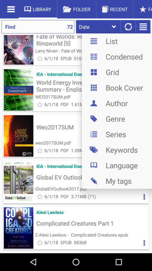 Per aprire una cartella come libro, naviga nella scheda Cartelle e tocca il suo nome. Se contiene almeno un file di immagine, vedrai l'opzione Associa in un libro.