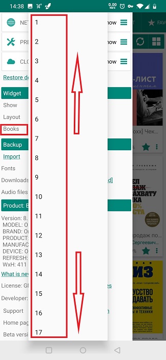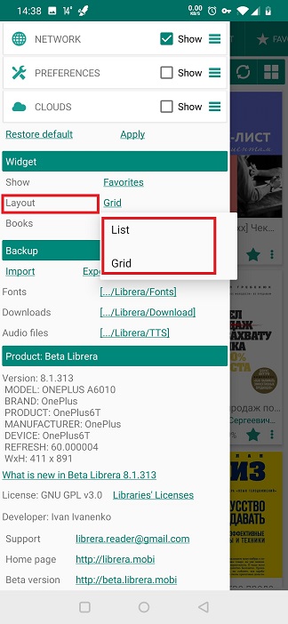 - Seleziona il layout dei libri nel widget di Librera