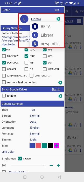 Librera ti consente di creare più profili. Puoi aggiungerne uno per qualsiasi cosa, dalla lettura diurna/notturna ai tuoi sbalzi d'umore, ai generi di libri, al tuo atteggiamento speciale nei confronti di un certo scrittore, ecc. E ricorda: un altro profilo (che potrebbe tirarti su di morale) è solo un paio di tocchi di distanza (da quello attuale).