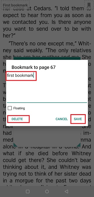 • 长按_书签功能区_中的书签将打开提示提示您删除它。