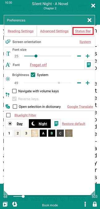 您可以让 Librera 在阅读书籍时始终在屏幕上显示您的书签。它们将在所谓的 Bookmarks Ribbon 中显示在屏幕顶部。当您需要快速添加新书签或在它们之间切换时,这种扩展书签模式应该会派上用场。 我们希望在 Musician's Mode 下运行该应用程序时,音乐家对这个很酷的功能有很高的需求。因此,默认情况下它带有在此模式下启用的功能区。