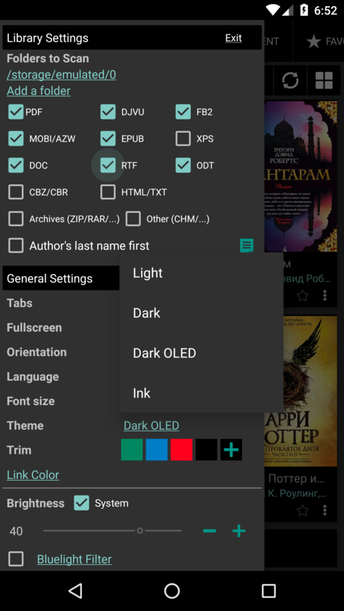 - 告诉* * Librera* * ,您希望使用哪种默认阅读模式来阅读特定的书本格式
